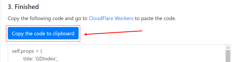 这时候你会得到一堆代码,点击Copy the code to clipboard即可。